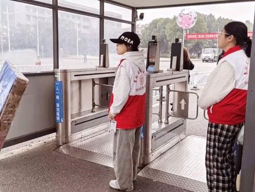 在北大门的检录处,志愿者耐心地开展交通疏导工作。他们提醒候考人员在行人通道内等候红绿灯,劝阻越线通行行为;耐心引导出租车、社会车辆规范停靠至指定区域,避免堵塞考生通行路线;遇到问路等需求的考生及家长,志愿者们第一时间提供帮助,用细致服务缓解备考紧张感。