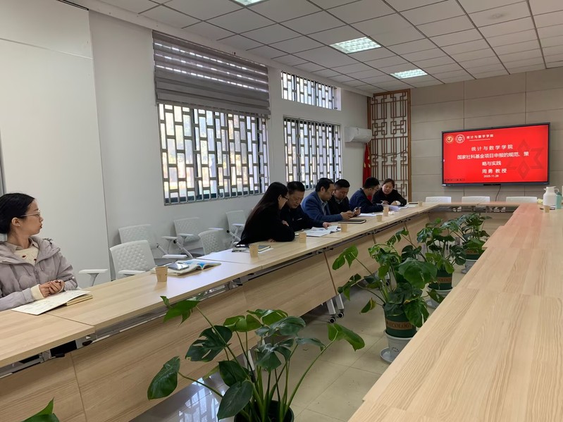 本网讯 11月29日,为进一步提升我院教师国家社科基金项目申报能力,拓展研究生的学术视野,统计与数学学院特邀华东师范大学统计学院院长周勇教授来院开展学术交流与项目申报指导。会议由统计与数学学院副院长王磊主持,学院骨干教师及研究生参加了本次讲座。