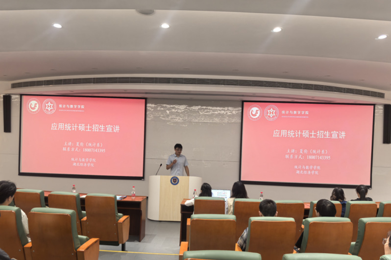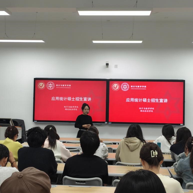(撰写人李倩,审稿人:王磊)为吸引优质生源、深化校际学术交流,助力2025年应用统计硕士招生工作高质量推进,我院组织夏伦、李倩、黄小舟、杨珂玲、叶提芳、卢米雪、孟雪井、祝丹等多位教师组成宣讲团队,先后赴湖北商贸学院、武汉体育学院体育科技学院、武昌工学院、湖北第二师范学院、武汉学院、武昌首义学院、湖北民族大学、法商学院等十余所院校,开展应用统计硕士专场招生宣讲活动。